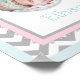 Empreinte en chevron gris et blanc avec contrastes bleu et rose doux ; pull en tutu à pois rose et pull en bande bleu bébé avec cravate et bandeau en arc 3D pour un baptême ou des faire-part jumeaux.