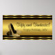 Parties scintillant en noir et or extra grande chaussures talon haute femmes fête d'anniversaire bannière. Vous pouvez personnaliser cette élégante bannière de chaussure haute talon or avec votre choix de couleur arrière - plan, texte dans le style de police et la couleur de votre choix.