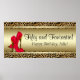 Grand noir et rouge léopard haut talon chaussures femmes fête d'anniversaire bannière. Vous pouvez personnaliser cette élégante bannière de soirée léopard avec votre choix de texte dans le style de police et la couleur de votre choix.