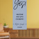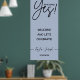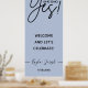 Panneau de mariage calligraphique simple avec lettrage 'Elle a dit Oui !'. Différentes options de couleur de fond disponibles : rose fuchsia, sauge, rose poudré, bleu poudré. Les noms et la date de l'événement sont modifiables.