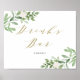 Affiche Bar à boissons Mariage verdoyant et aux fleurs bla
