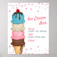 Summer Ice Cream Bar Modern Watercolor Fête des mariées Poster Signe présente un cône de crème glacée d'été aquarelle rempli de boules de crème glacée colorées sucrées sur un arrière - plan blanc. Conçu pour vous par Evco Studio www.zazzle.com/store/evcostudio