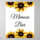 Panneau de signalisation de mariage Bar à Mimosa Tournesol, bannière avec des fleurs jaunes sur fond blanc. Modifiez le texte en utilisant l'option de personnalisation de ce modèle. Pour d'autres modifications du style et de la couleur du texte, utilisez l'option de personnalisation avancée.