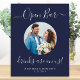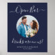 Bar ouvert ! Calligraphie simple mais élégante, ce panneau de bar de mariage présente Bar ouvert en calligraphie élégante, et Les boissons sont pour nous. Personnalisez ce panneau de mariage élégant avec votre photo de fiançailles ou photo de couple préférée, noms et date ! COPYRIGHT © 2020 Judy Burrows, Black Dog Art - Tous droits réservés. Affiche de bar ouvert de mariage personnalisée Photo Bleu Nuit