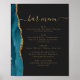 Affiche Barre mariage Menu Turquoise Bleu Or Agate Bleu fo