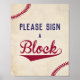 Affiche Baseball S'il vous plaît signer un panneau de bloc