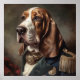 peinture d'un basset hound mignon portant un costume de Napoléon