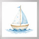 Affiche Bateau à voile aquarelle bleu et blanc – Naissance