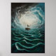 Affiche Bateau solitaire en Mer Turbulente Paysage océaniq