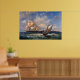 Un beau voilier avec toutes les voiles et le drapeau suédois. L'affiche est une peinture d'art numérisée du 19ème siècle réalisée par le peintre suédois Arnold Plagemann.