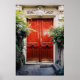 AFFICHE BÂTIMENT BLANC MONTRANT FERMÉ PORTE EN BOIS ROUGE