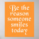 A modern typography design of the motivational words Be The Reason Someone Smiles Today in white lettering. You can change the background colour to the colour of your choice. Just click the Edit Design link, shown under the item description on the right, and then click on the Background icon on the left to choose your custom colour.
