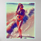 Modèle de fille de plage de Bikini debout au bord de l'eau avec une queue de cheval pour customiser avec votre propre salutation, nom, message, etc
