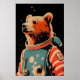 Affiche Bear Astronaut Poster, Bear Retro Print, Brown