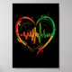 Un coeur avec l'onde de pouls à l'intérieur avec des couleurs rouge, or, rasta vert pour symboliser l'effet du reggae sur le coeur