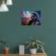 Beautiful Mythic Tiger Goddess with Saturn Rising Art Poster shows a stunning image of tiger faced goddess in a field of flowers and two distant planets glowing in the background. This mythical image is from the imagination of CricketDiane 2025 and Cricket House Studios Art and Design using one of my photographs of a tiger from the Atlanta zoo mixed with an artwork I did that showed a winged goddess with iridescent wings standing next to a tiger with the clearly ringed Saturn in the distance behind them and bright red flowers in the foreground. I had created it in drawings and then in a major artwork 20x30 in pastels on matboard. It was substantial and very pretty. When I was trying to make a similar image as generative content from a photo of the original artwork I created and added the photo of the real tiger, hoping it would get the tiger better done than in some iterations I'd already done, the AI came out with some incredible pieces that I kept moving into and going further with them, still with the same pieces of mine in the mix. At some point, this was one of the iterations of that process and I was in love with the beauty of it when I saw it. Both the original artwork of the goddess lady walking with the tiger walking by her side and Saturn behind them as well as this one of the Tiger Goddess are iterations from my imagination using the styles I've created combined with what I want art to do - to portray what cannot be made in some other way - from the mind's eye. This work does that. - cricketdiane