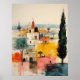 Beautiful red ochre white old small town painting colourful elegant Poster