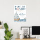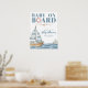 Bienvenue dans votre baby shower à thème nautique avec cette enseigne charmante, un voilier bleu et blanc classique au milieu d'un océan bleu, avec une mouette perchée sur un rocher. Une bague de vie rouge, de l'eau bleue et des détails de cordages ajoutent au charme maritime. Sur le côté droit, "Welcome to" s’affiche dans un mélange élégant de polices serif et script, suivi du nom de la maman-to-be et de la date de l’événement. Le dos est clair pour un look propre et minimal. Disponible soit en version imprimée, soit en tant que fichier numérique téléchargeable à imprimer à la maison ou localement. Parfait pour une douche "Baby On Board" ou toute célébration inspirée de l'océan, ce panneau donne le décor d'une journée festive et amusante. Customisez le texte, les polices et les couleurs pour correspondre à votre événement !