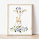 Affiche Bébé cerf, Animaux des bois, Boho, Fleurs violette