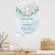 Affiche Bébé éléphant fleurs bleues Baby shower garçon Bie