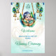 Bébé mignon Krishna Indien traditionnel Baby Naming Namkaran Ceremony Cérémonie de Berceau modifiable modèle affiche d'accueil instantané téléchargement numérique, cérémonie Namakarana décoration d'entrée personnalisée affiche d'accueil, aquarelle moderne bébé mignon Krishna dans berceau en plumes paon avec paon et guirlandes, adapté pour bébé garçon.