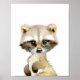 Affiche Bébé Raton Laveur Aquarelle Chambre Enfant Bois