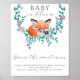 Bébé en fleurs Fête de bébé Renard des bois Floral. Personnalisez cette fête de bébé renard des bois. Bébé renard endormi aquarelle sur fleurs et feuilles de verdure. Bébé en fleurs.