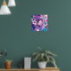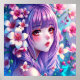 Jolie fille anime avec des cheveux violets et des fleurs blanches hyper réaliste poster d'art ai.