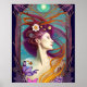 Affiche Belle Art Nouveau Bleu Fleurs papillon turquoises