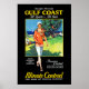 Affiche vintage de voyage ferroviaire faisant la promotion de Beautiful Mississippi et de la côte du Golfe comme une destination sportive et de vacances toute l'année.