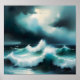 Affiche Belle peinture cool Bleu Océan avec vagues