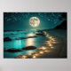 Affiche Belle Pleine lune Plage Océan étoile Nuit