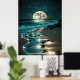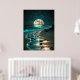 Affiche Belle Pleine lune Plage Océan étoile Nuit