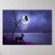 Affiche Belle Pleine lune sur l'eau avec Chouette et Cerf