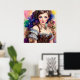 Belle affiche de la fille Steampunk. Beau arrière - plan d'aquarelle en rose, violet, vert, bleu et jaune. Les amateurs d'art seront ravis d'avoir cette pendaison au mur.