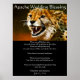 Cette belle bénédiction mariage apache, qui commence par "maintenant vous ne sentirez pas de pluie. avec un guépard électrifié vous regardant avec ses grandes dents et lèvres noires et un fond orange.
