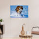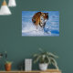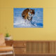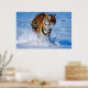 Avec une vue à couper le souffle d'une course de tigre du BengaleIng dans la belle eau bleue de l'océan avec des éclaboussures d'eau qui se répandent partout.Ceci est une belle photo sur cette affiche