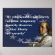 "He who would trade liberty for some temporary security deserves neither liberty nor security" Benjamin Franklin Quote.