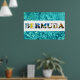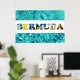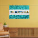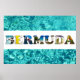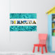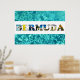 Affichez votre amour pour le pays des Bermudes avec cette affiche contenant des photos de voyage de plage des Bermudes imposées sur un arrière - plan bleu tropical de l'océan.