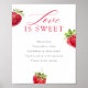 Berry in love bridal shower 'Love Is Sweet' dessert bar sign with a minimalist watercolor strawberry design and elegant script.