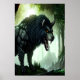 une bête de loup d'imaginaire debout dans la forêt noire. C'est un art généré par l'IA.