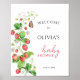 Affiche de bienvenue pour Baby Shower aux fraises à l'aquarelle. Articles assortis disponibles.