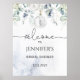 Panneau de bienvenue pour la baby shower de la mariée au eucalyptus d'hiver. Articles assortis disponibles.