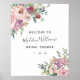 Magnifique affiche de bienvenue pour une baby shower dusty rose avec des roses, des hortensias, de l'eucalyptus et d'autres feuillages réalisés à l'aquarelle. Une jolie typographie ajoute au style charmant. Voir les articles coordonnés dans notre boutique, Enchanted Finch.