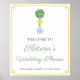 Peint à la main dans un design de panneau de bienvenue de fête décoré d'un topiaire de boule de buis aquarelle dans un pot en gingembre. Illustré ici pour une douche de mariage, mais tout le texte peut être personnalisé selon vos besoins. Vous pouvez changer toutes les couleurs de texte et également la couleur de la bordure. Pour commencer, cliquez sur le bouton bleu "Modifier la conception" à droite de l'invitation exemple.