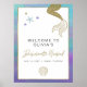 Ce panneau de bienvenue pour la fête de jeune fille présente un arrière-plan inspiré des sirènes avec des queues de sirène et des coquillages. Associez-le à tout ce qui se trouve dans la collection SIREN pour un look cohérent.
