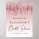 Affiche de bienvenue glamour pour votre fête de mariée avec des paillettes roses et or rose qui coulent sur un fond dégradé or rose et "Fête de Mariée" dans un joli script. Personnalisez avec votre nom et la date de la fête.