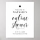 Simple et élégant panneau de bienvenue pour la douche de la mariée en ligne avec calligraphie grasse, typographie classique et accent de cœur. Personnalisez en ajoutant un nom, une date et d'autres détails. Ce panneau de bienvenue en ligne simple en noir et blanc est parfait pour tous les thèmes et saisons de douche.