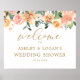 Pancarte de bienvenue pour la réception de mariage élégante aux fleurs de pêche dorées, affiches de bienvenue pour la réception des couples