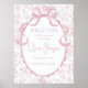 Bienvenue sur l'affiche de la réception de mariage en chinoiserie florale à ruban rose